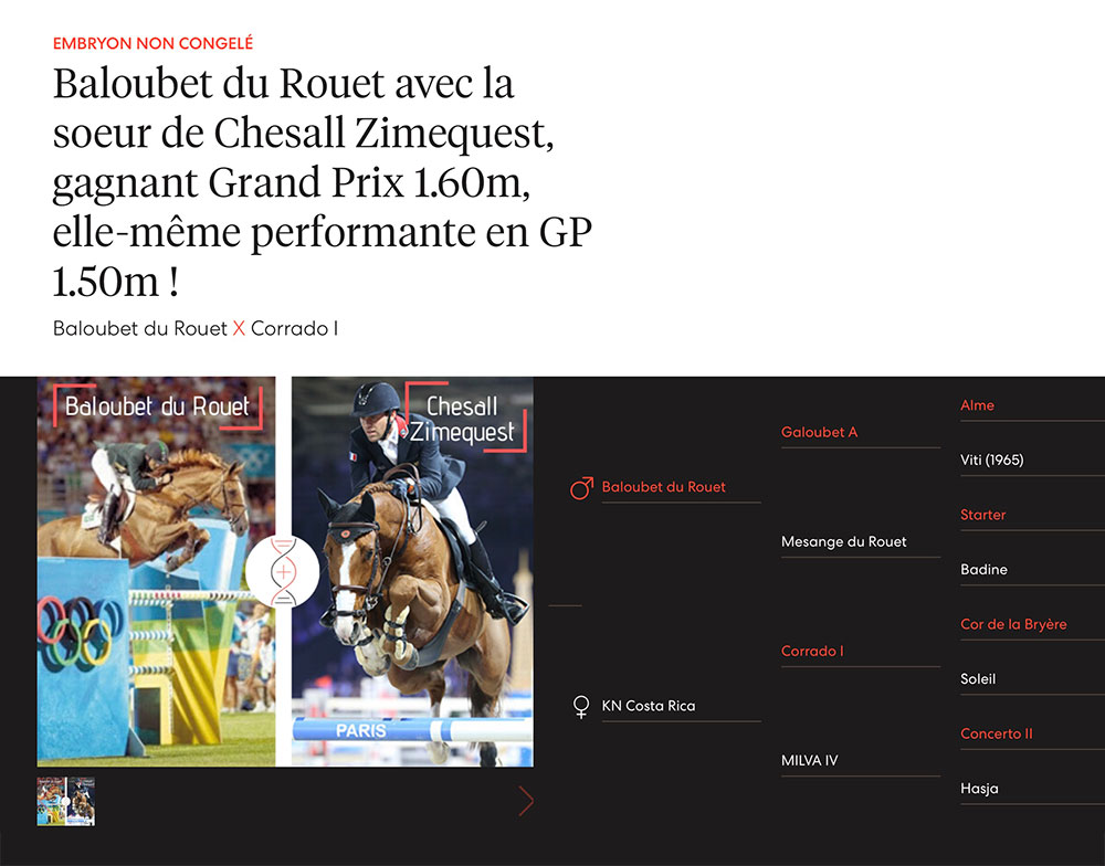 Père : nul autre que le champion olympique Baloubet du Rouet (voir lien internet dans la section Étalons)